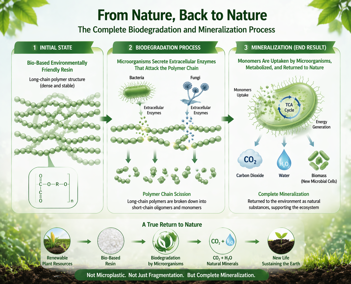 | Zersetzungszeitraum | Hunderte von Jahren | 3 bis 12 Monate | Schnelle Ressourcenrückgabe |